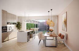 Van royale drie- en vierlaagse gezinswoningen aan de parkrand tot compacte eengezinswoningen in de luwte van de buurt. Elke woning is doordacht ontworpen, duurzaam gebouwd en voorzien van een eigen buitenruimte. De architectuur sluit naadloos aan bij de bestaande bebouwing in de wijk: stoer en met oog voor detail.